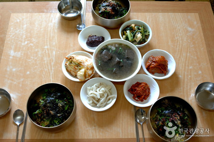 육회비빔밥과 함께 나오는 선지국과,